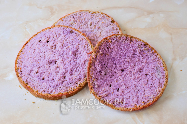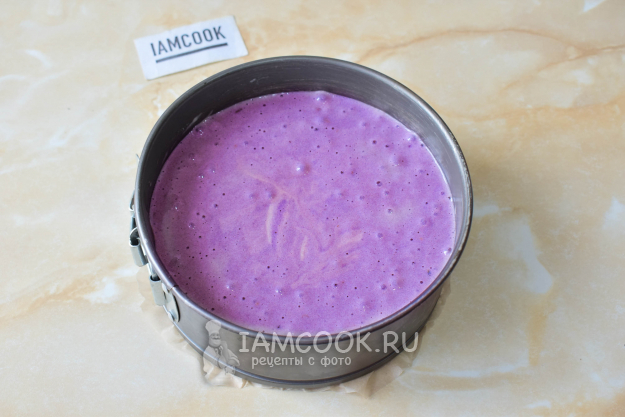 Тесто станет фиолетового цвета. Перелейте его в форму для выпечки (15см) и поставьте в духовку, предварительно разогретую до 180 градусов, примерно на 35-40 минут. Ориентируйтесь по своей духовке.