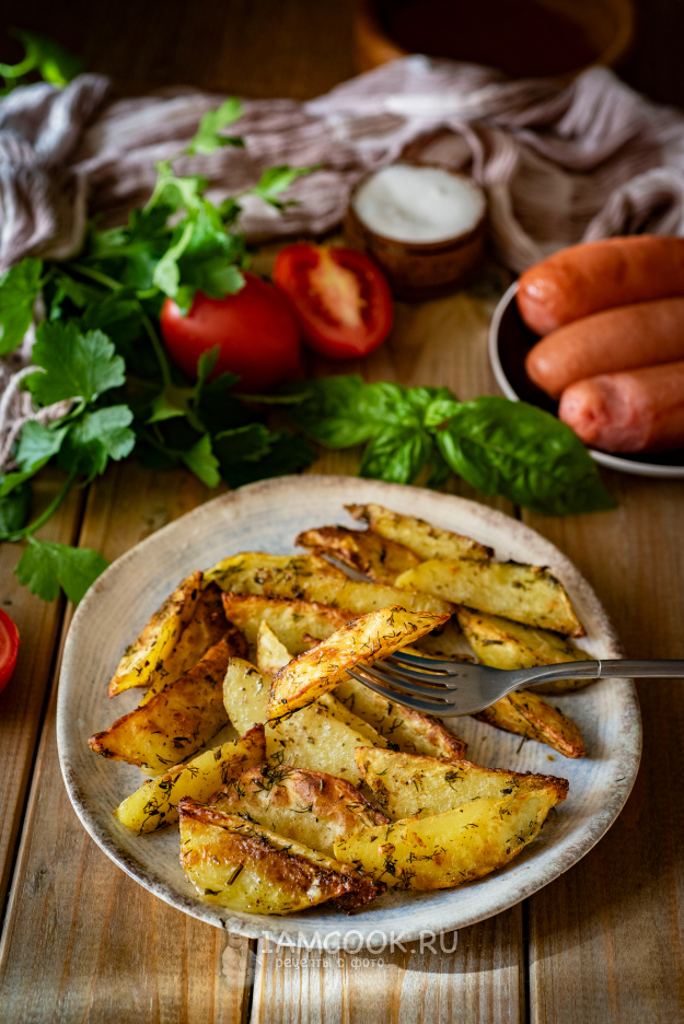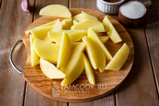 Картофель нарежем дольками, как на фото.
