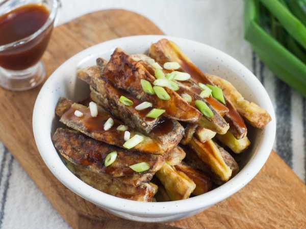 Жареные баклажаны полейте медовым соусом и подавайте к столу.