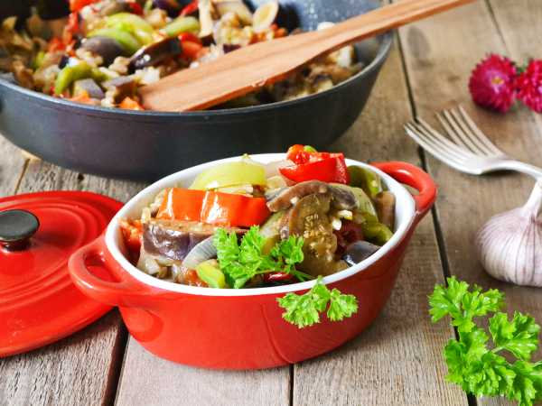 Соберите ингредиенты для приготовления жареных баклажанов в медовом соусе на сковороде.