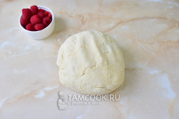 Сформируйте из теста лепешку, выложите ягоды малины и слепите шарик, чтобы ягодка осталась внутри.