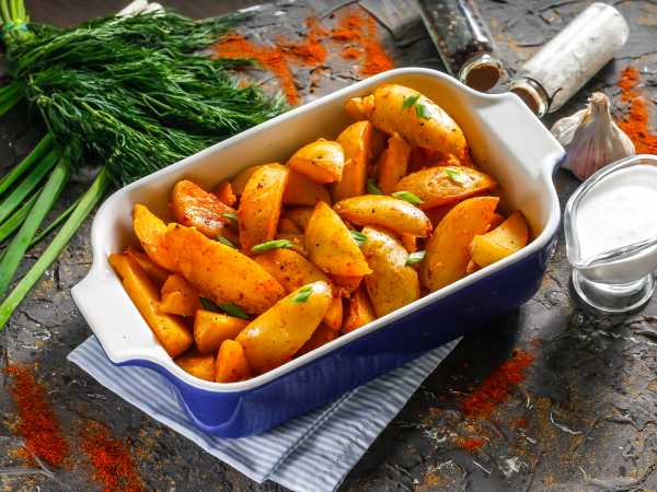 Итак, для приготовления картошки в микроволновке в пакете вам потребуется пара-тройка картофелин, соль и приправа для картофеля.
