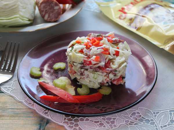 Колбасу нарезать тонкими кружочками.