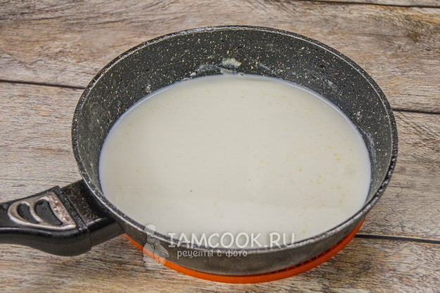 Влить воду и сливки, добавить соль, черный молотый перец.