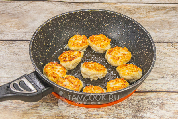 Разогреть растительное масло в сковороде. Сформировать фрикадельки и обжарить до корочки со всех сторон.