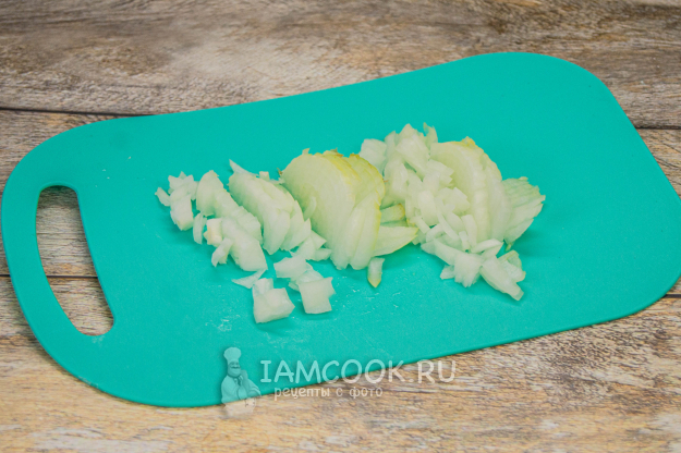 Лук очистить от шелухи, промыть. Нарезать мелким кубиком.