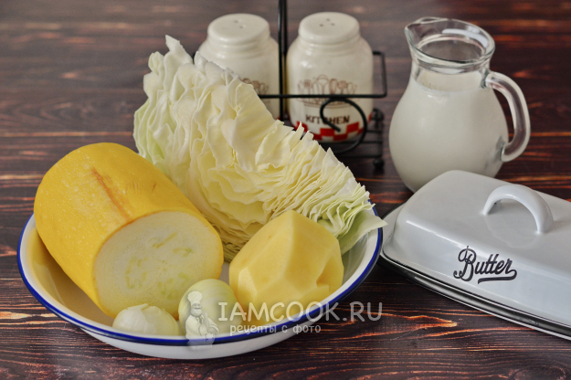 Всё необходимое соберите по списку и приступим к приготовлению супа-пюре из кабачков и капусты.