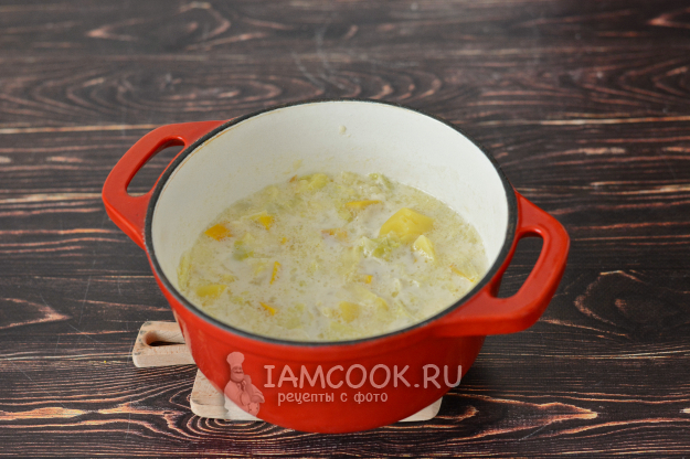 Варите овощи в молоке до полнейшей мягкости. На это уйдёт примерно 20-25 минут.