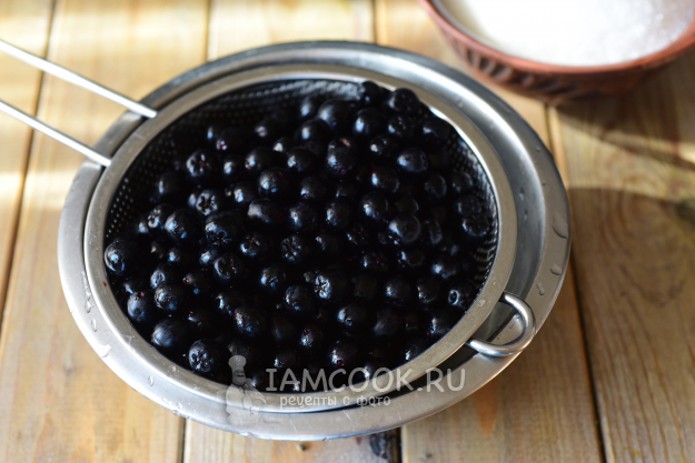 Удалим у черноплодной рябины хвостики, переберем ягоды, промоем их в холодной воде.