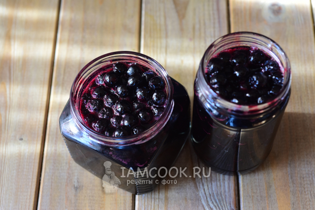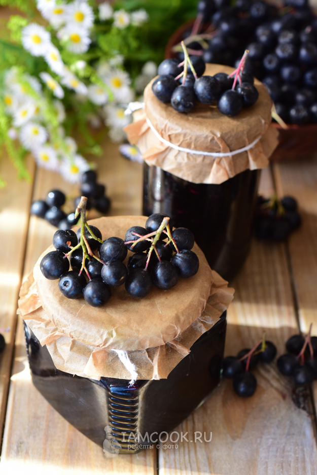 Разложим готовое варенье-пятиминутку из черноплодной рябины по стерилизованным баночкам.