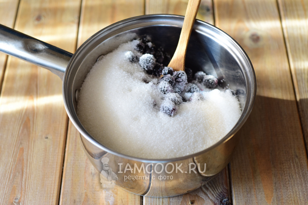 Соберём необходимые ингредиенты для приготовления варенья-пятиминутки из черноплодной рябины. Простерилизуем удобным способом стеклянные банки и крышки для консервирования.