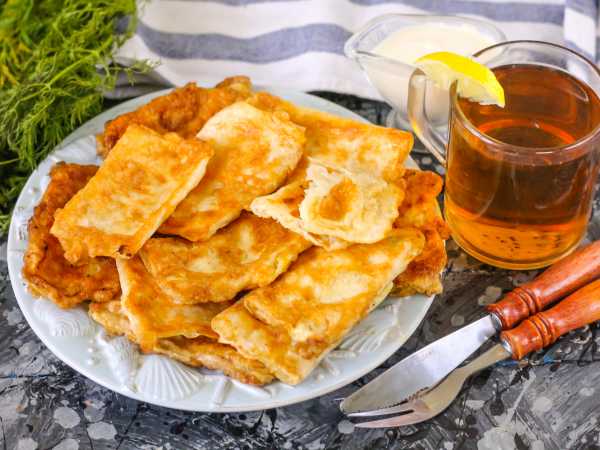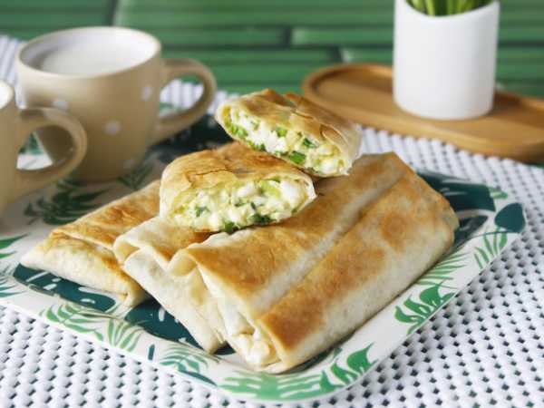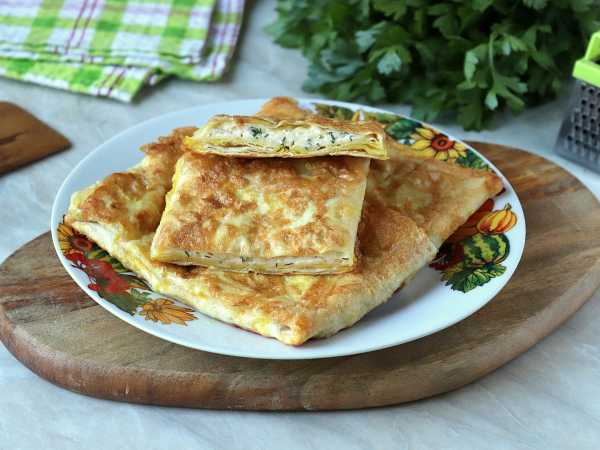 Разогреваем растительное масло в сковороде. На огне выше среднего обжариваем конвертики с двух сторон до золотистости. Всего у меня получилось 6 шт.