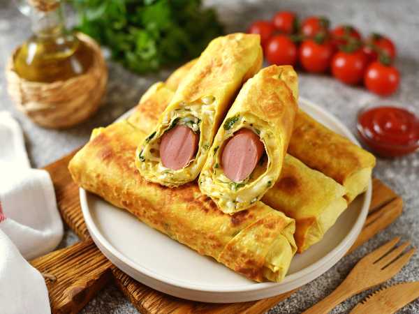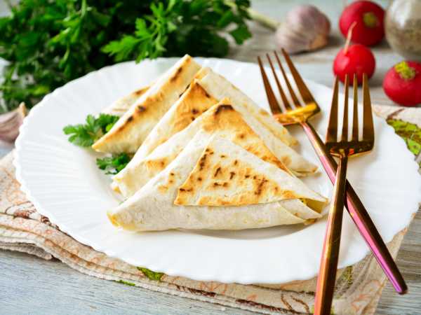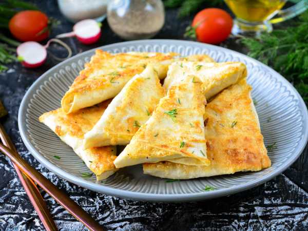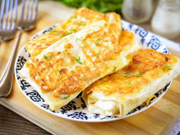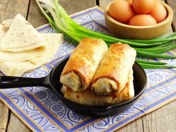 Соберите ингредиенты для приготовления конвертиков из лаваша с грибами на сковороде.
