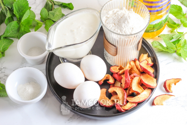 Продукты для приготовления пирога с сушеными яблоками - перед вами!