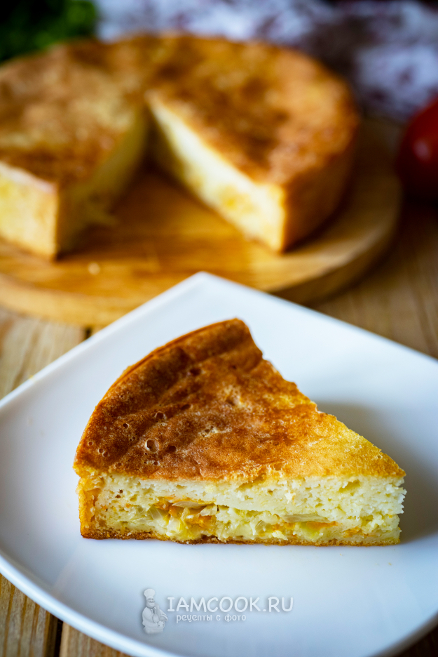 Готовый пирог немного охладим, нарежем на кусочки и подадим к столу. Приятного аппетита!