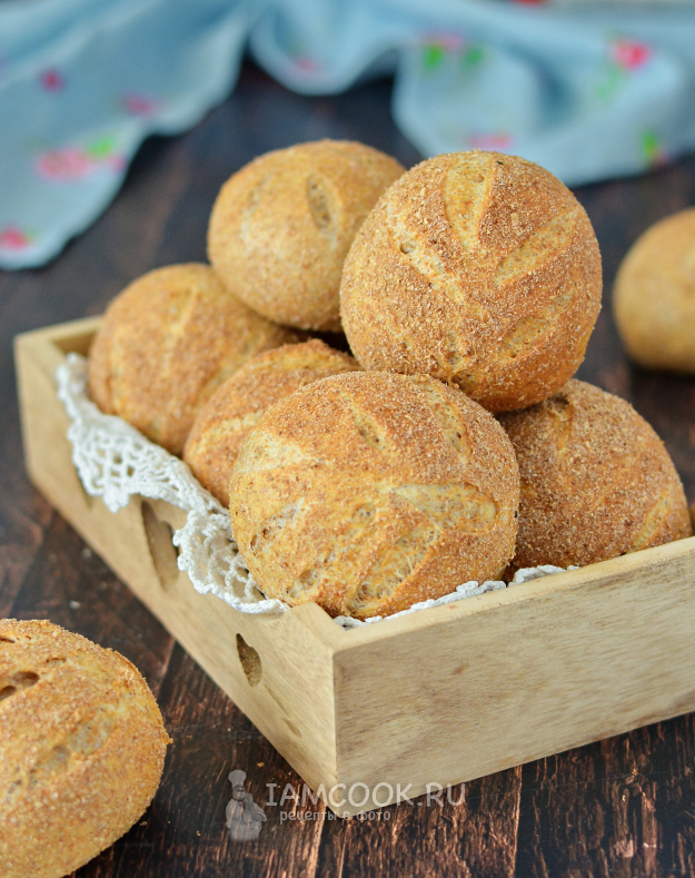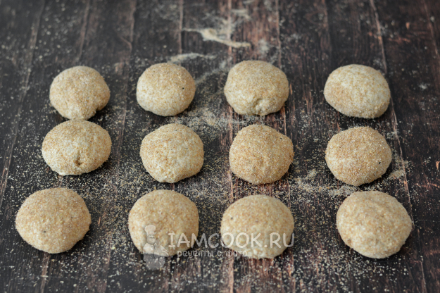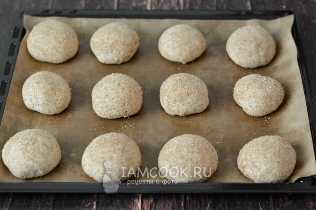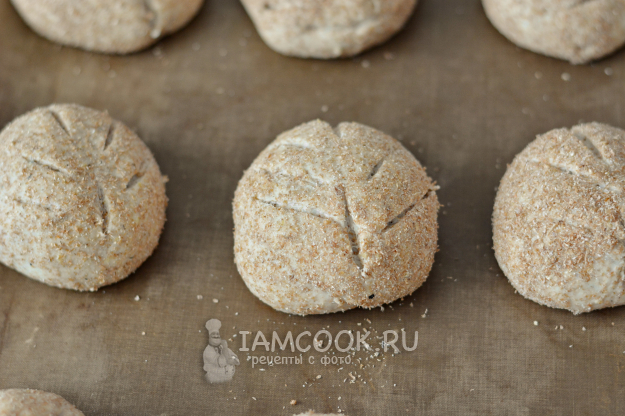 Округлите заготовки для булочек и слегка обваляйте их в отрубях.