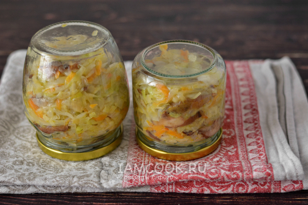 В чистые банки разложите солянку и слегка закрутите крышками, но не до конца. Нам ещё предстоит стерилизация.
