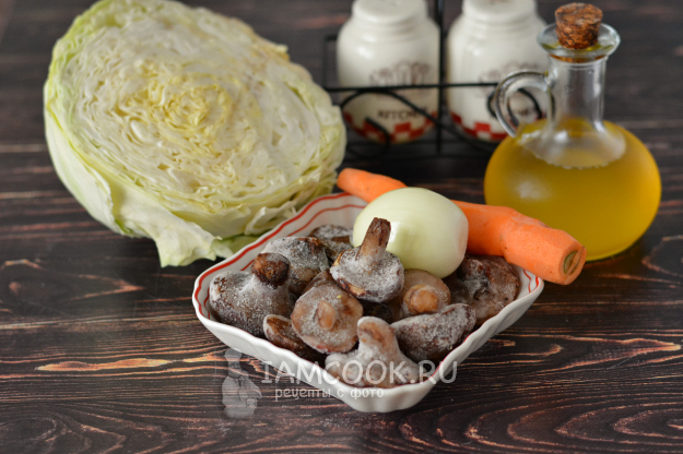 Соберите все необходимые продукты для приготовления солянки с маслятами и капустой на зиму.