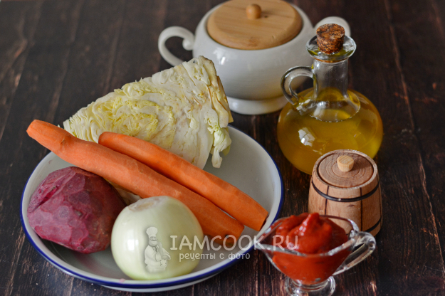 Соберите, очистите и помойте все овощи для приготовления заправки для борща на зиму с капустой. Вес в списке ингредиентов указан уже в очищенном виде.