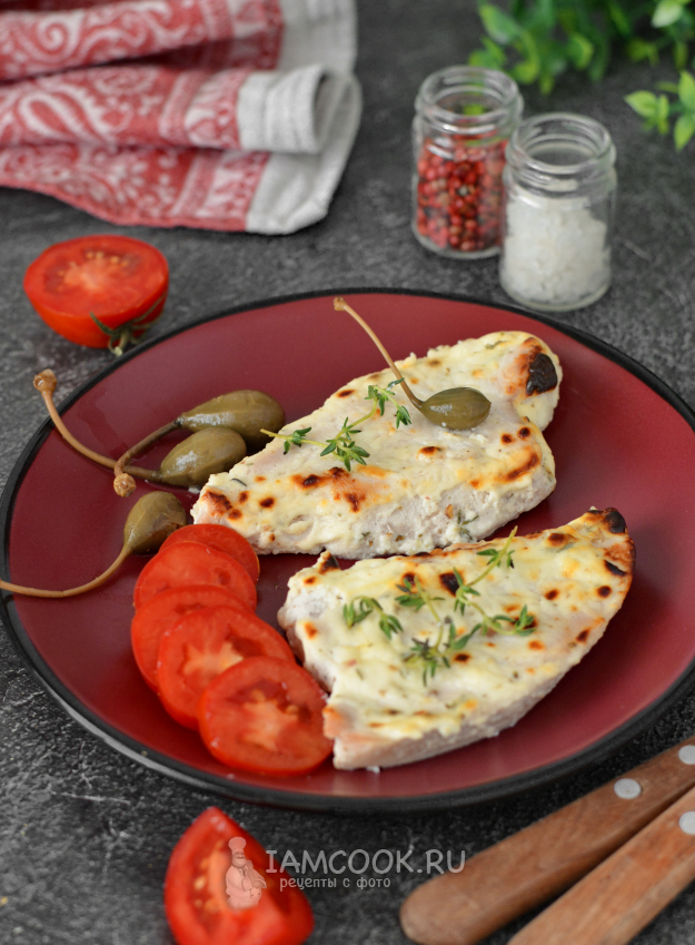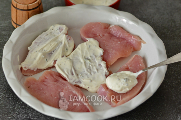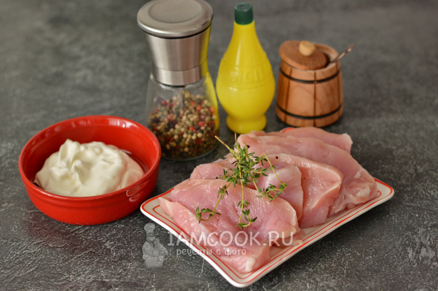 Подготовьте по списку все необходимые продукты для запекания стейков индейки в сметане в духовке. Если будете нарезать стейки из грудки индейки самостоятельно, то рекомендую делать их толщиной около 1,5-2 см, не толще.