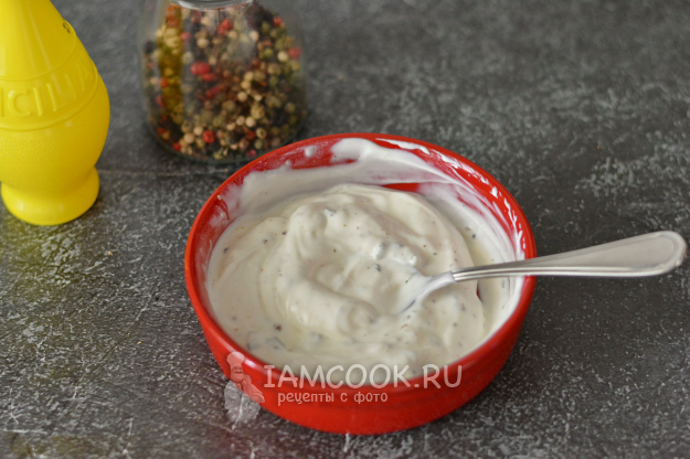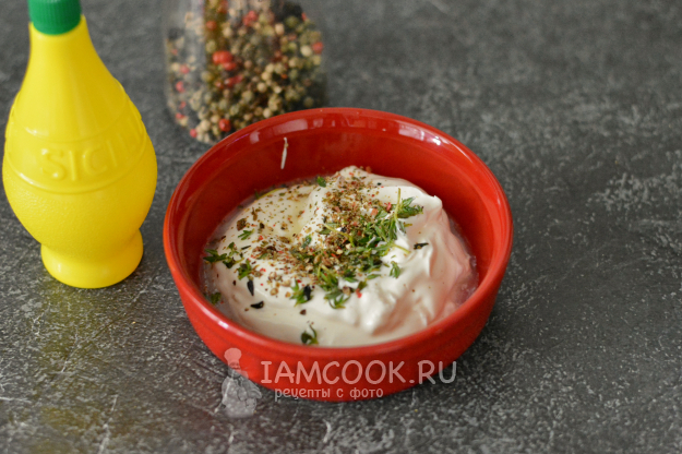 Размешайте ложкой и готово. Этой вкусной сметаной мы намажем стейки сверху перед запеканием.