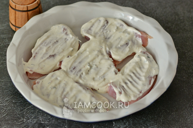 Сверху каждый стейк обильно смажьте приправленной сметаной.