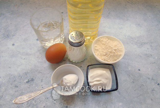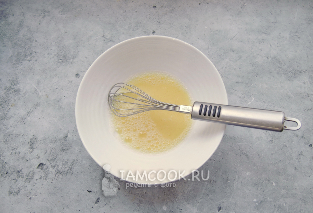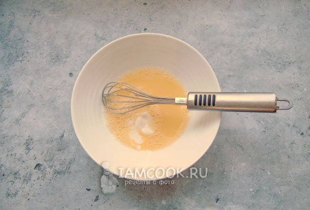 С помощью венчика или вилки в миске перемешайте яйцо с водой, подсолнечным маслом и солью.