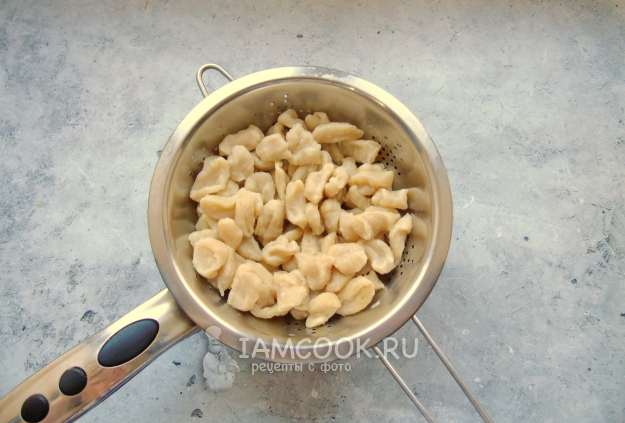 Вскипятите воду, немного посолите и выложите в кастрюлю галушки. Варите 5-7 минут с момента закипания. После откиньте на дуршлаг.