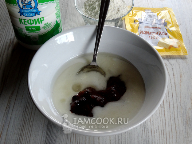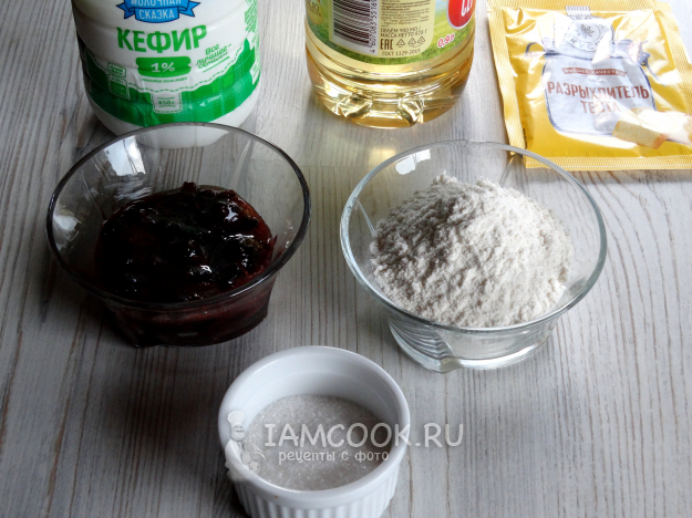 Вот всё, что я взяла, чтобы приготовить кекс на кефире с вареньем в духовке.