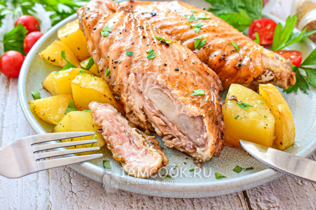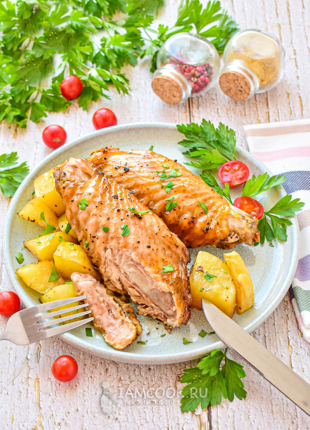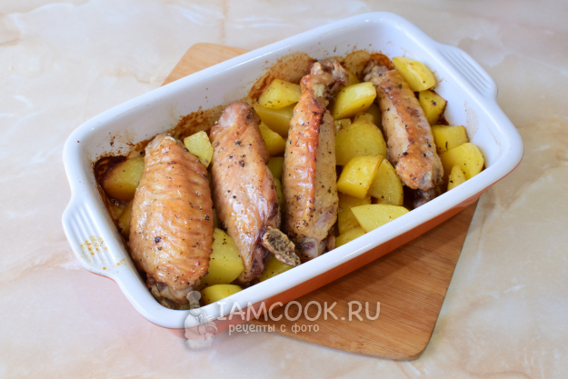 Крылья индейки с картофелем готовы! Разложите по тарелкам и подавайте к столу.
