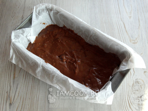 Переложить тесто в форму, которую надо выстелить бумагой для выпечки или смазать маслом.