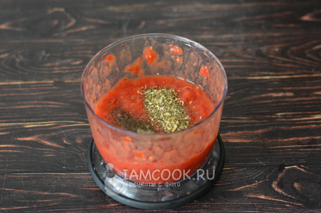 Для этого в блендере измельчите свежие помидоры, добавьте к ним соль, перец и орегано по вкусу. Размешайте, чтобы соль растворилась. Если помидоры не очень сладкие, то можно добавить немного сахара по вкусу.