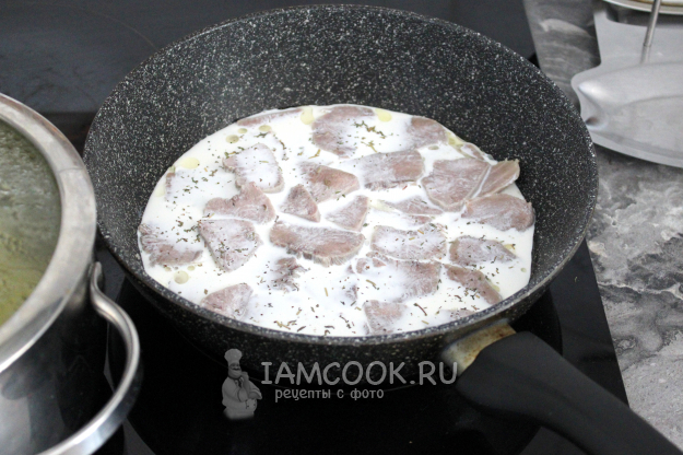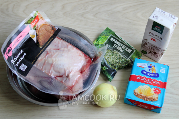 Для приготовления свиного языка в сливках возьмите ингредиенты по списку к рецепту.