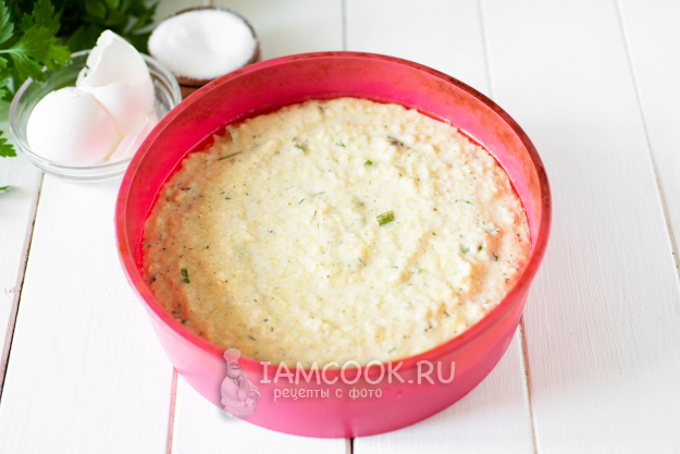 Всю эту картофельную массу выложим в силиконовую форму, разравнивая ложкой. Форму предварительно я ничем не смазывала.