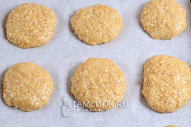 После чего застелите противень пергаментной бумагой, обмакните руки в воду и сформируйте из теста небольшие колобочки. Приплюсните их и выложите на бумагу на расстоянии минимум 2 см. Это условие обязательное, так как печенья увеличатся в размерах примерно вдвое.