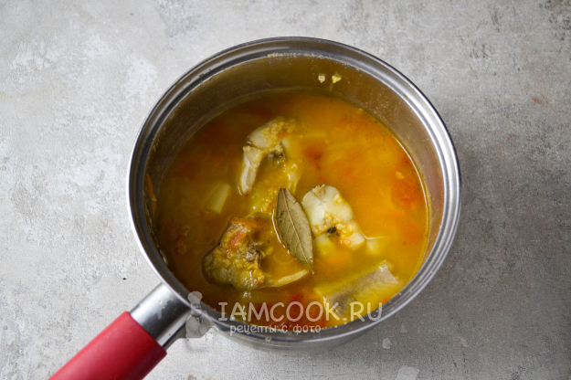 Добавьте лавровый листочек в кастрюлю и снимите с огня.