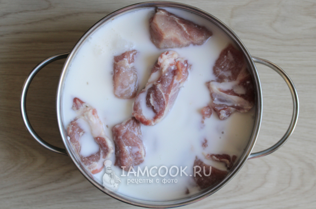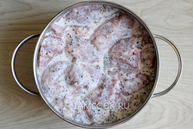 Для маринования в айране взяла ту часть свиной шейки, в которой было поменьше жира. Также подходят и другие виды свинины, т.е. мясо с других мест.