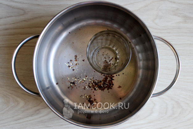 Смесь перцев выбирайте на свой вкус, а я предлагаю просто горошины черного и душистого.