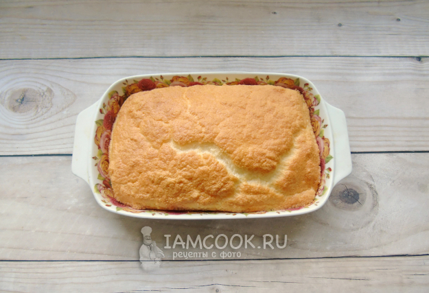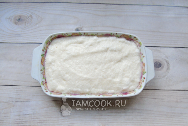 Очень щедро смажьте сливочным маслом форму и выложите в неё приготовленную массу. Разровняйте поверхность лопаткой.