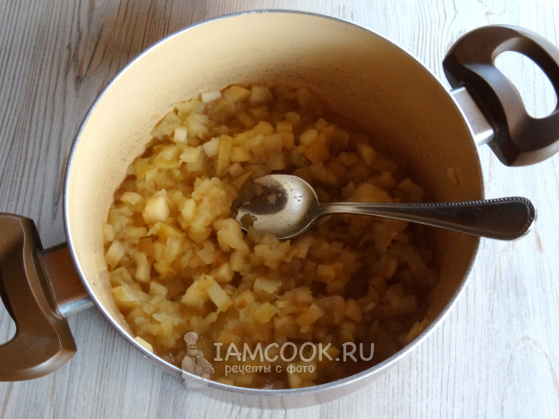 Варить варенье из яблок с медом на среднем огне, помешивая, 15 минут.