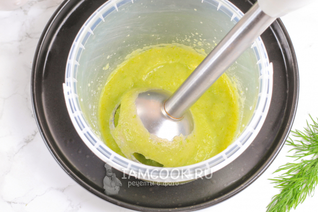Слегка остудите и переместите в емкость для погружного блендера или в чашу измельчителя. Пюрируйте 2-3 минуты. Проследите за тем, чтобы не осталось крупных или мелких кусочков овоща в пюре из кабачка для ребенка.