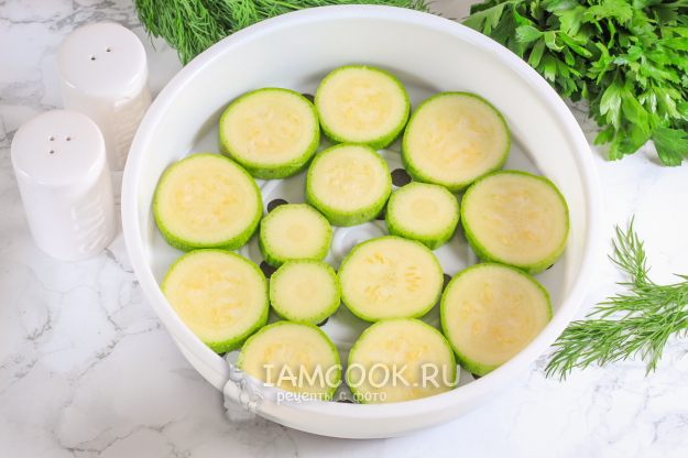 Отварите кабачки на пару примерно 10-15 минут, до мягкости.