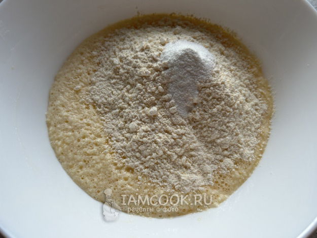 Всыпать муку и разрыхлитель.