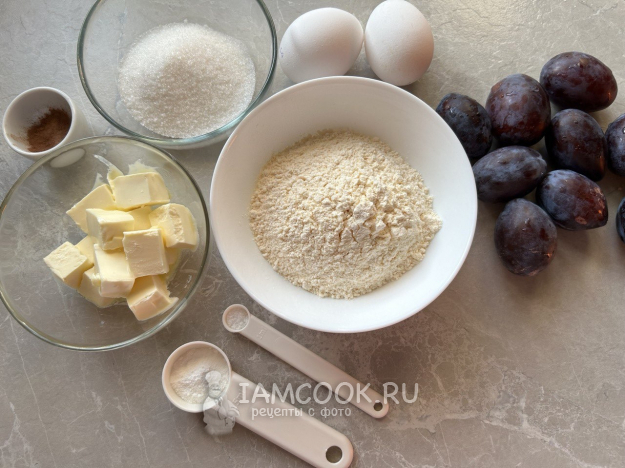 Подготовить все необходимые ингредиенты для сливового пирога без глютена.