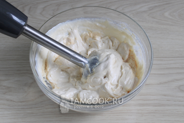 Добавьте в глянцевую массу сахар и перемешайте.