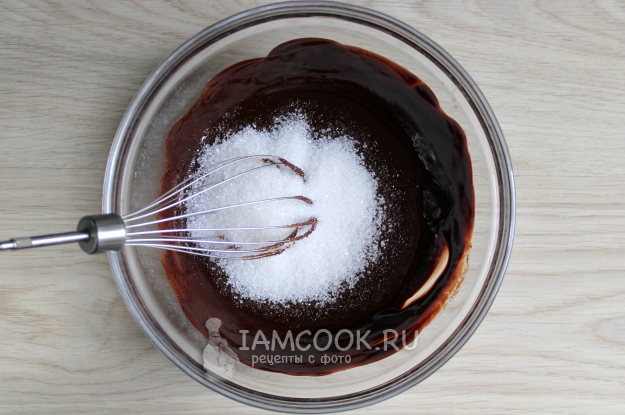 В поостывшую шоколадную массу вмешайте яйца.