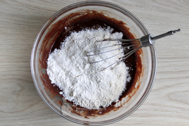 Соедините с мукой и разрыхлителем, перемешайте, и тесто готово.