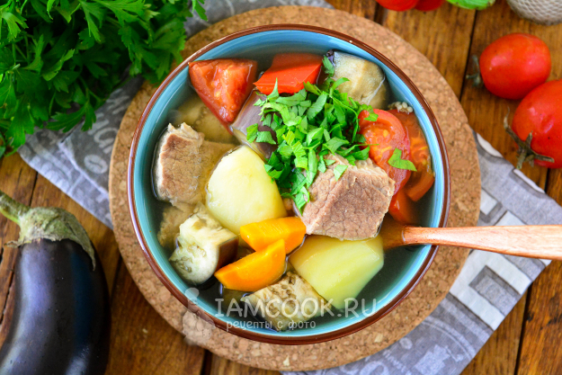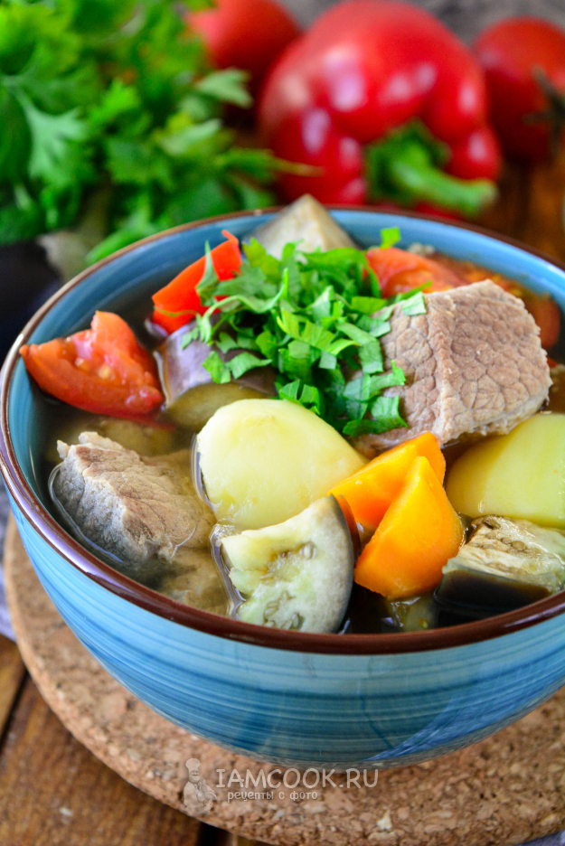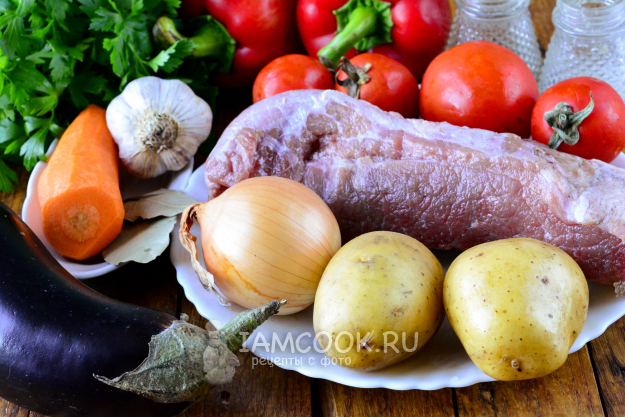 Соберите все ингредиенты для приготовления шурпы с баклажанами