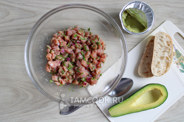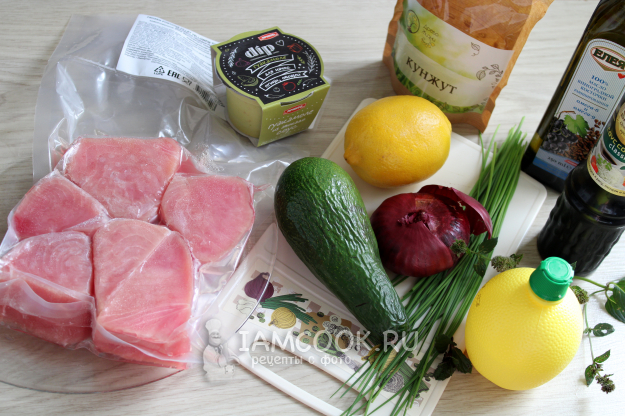 Для тартара из тунца с авокадо подготовьте ингредиенты по списку к рецепту. Филе тунца приобретайте в виде обрезков филе шоковой заморозки, авокадо нужно спелое и мягкое. Кстати, на сайте есть статья, помогающая выбирать авокадо в магазине!