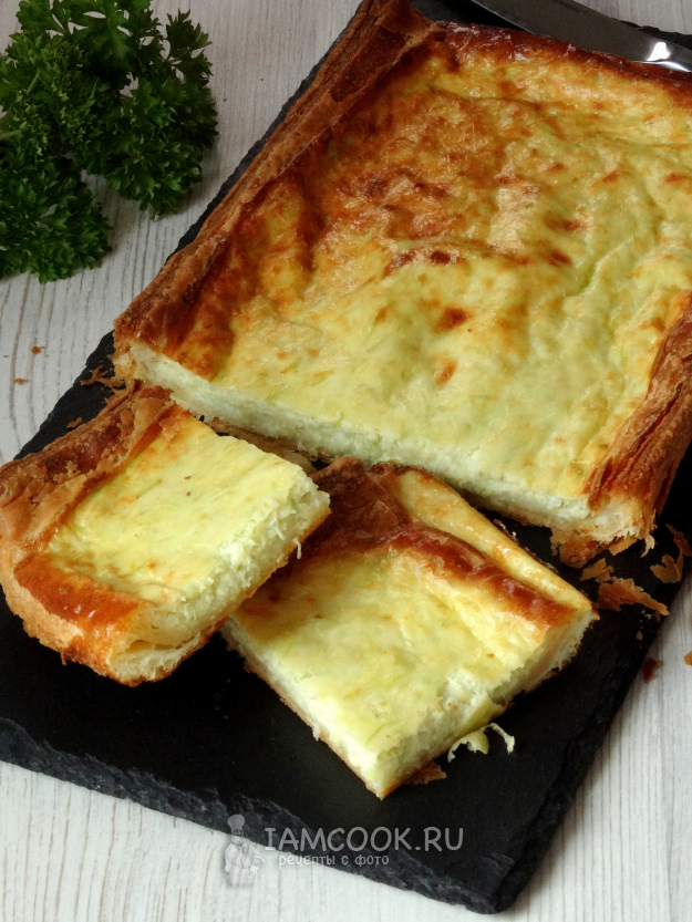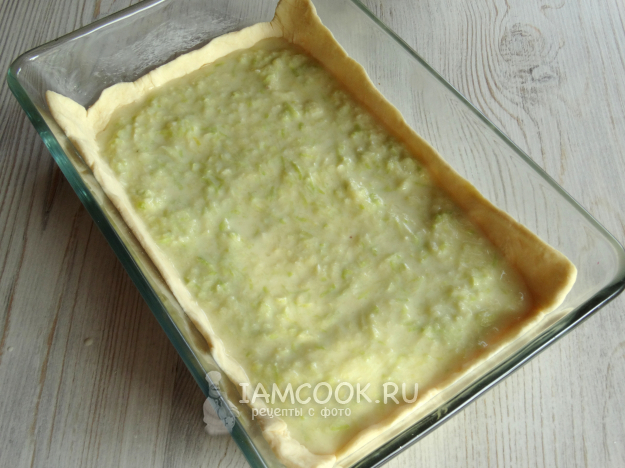 Пирог из слоеного теста с кабачками готовим из таких ингредиентов.